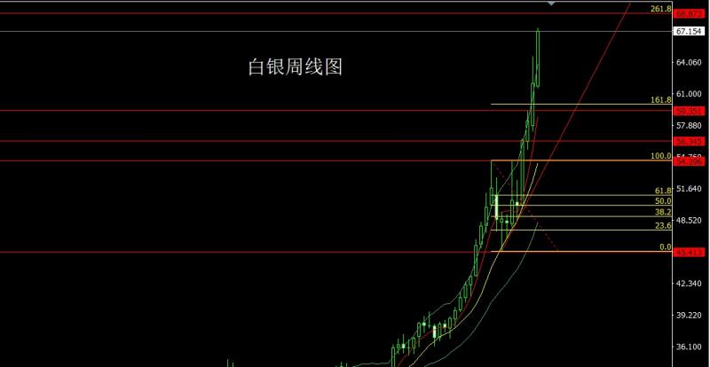 白银市场上周开盘在61.715的位置后行情先回落,周线最低给到了61.486的位置后行情强势拉升,周线最高触及到了67.465的历史新高后整理周线整理,周线最终收线在了67.154的位置后,周线以一根上影线稍长于下影线的大阳线收线,而这这样的形态收尾后,本周有继续看多需求,点位上,下方37.8的多和38.8的和跟进在56持有,50.75的多和52.7的多减仓后止损跟进在61,今日的的行情66.3多止损66,目标看66.8和67.2和67.5和67.8和68-68.3.