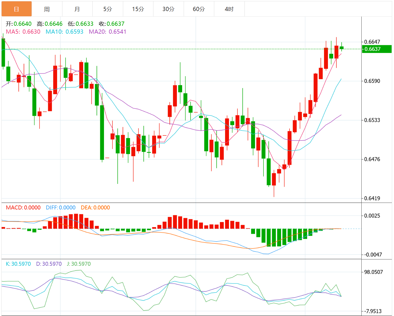 周三亚盘,澳元/美元徘徊于0.6638附近,日内下跌0.05%。澳储行与美联储之间的货币政策路径分歧增强了澳元的吸引力。