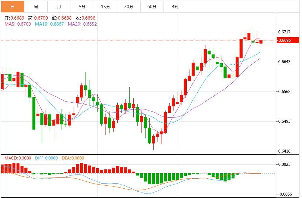周三亚盘,澳元/美元徘徊于0.6697附近,澳元/美元在假期季节市场成交量减少的情况下失守关键技术水平。