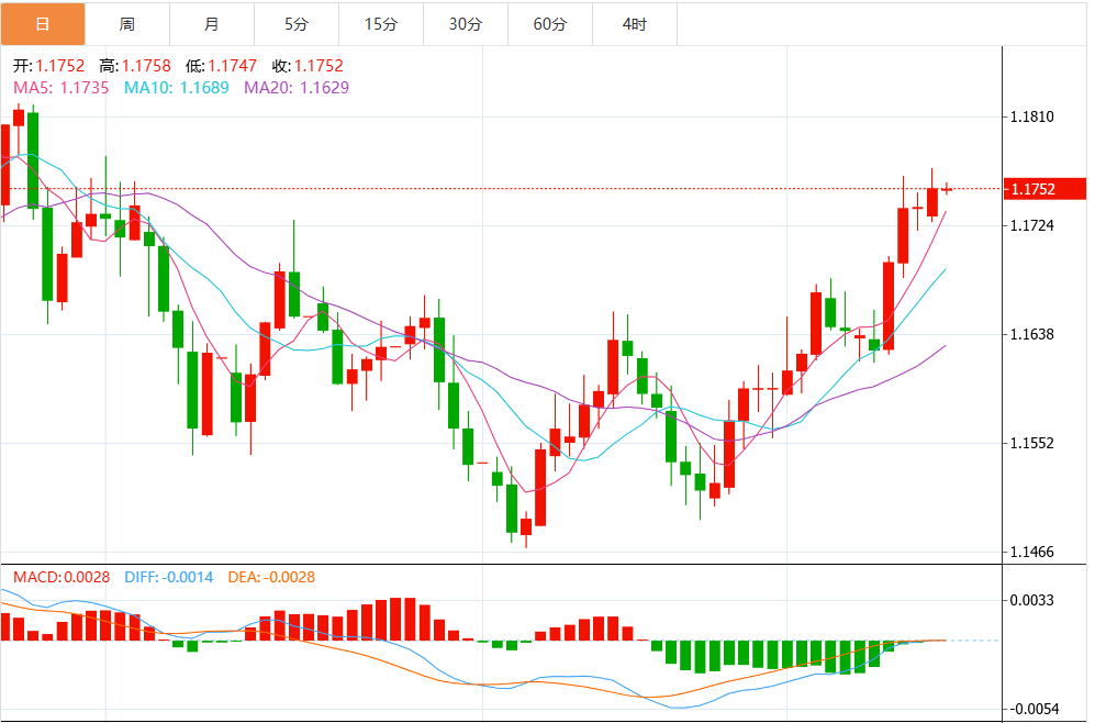 周二亚盘,欧元/美元徘徊于1.1752附近,周一,欧元/美元在1.1700阈值上方保持坚挺,因美元走弱,投资者等待周二最新的非农就业报告。