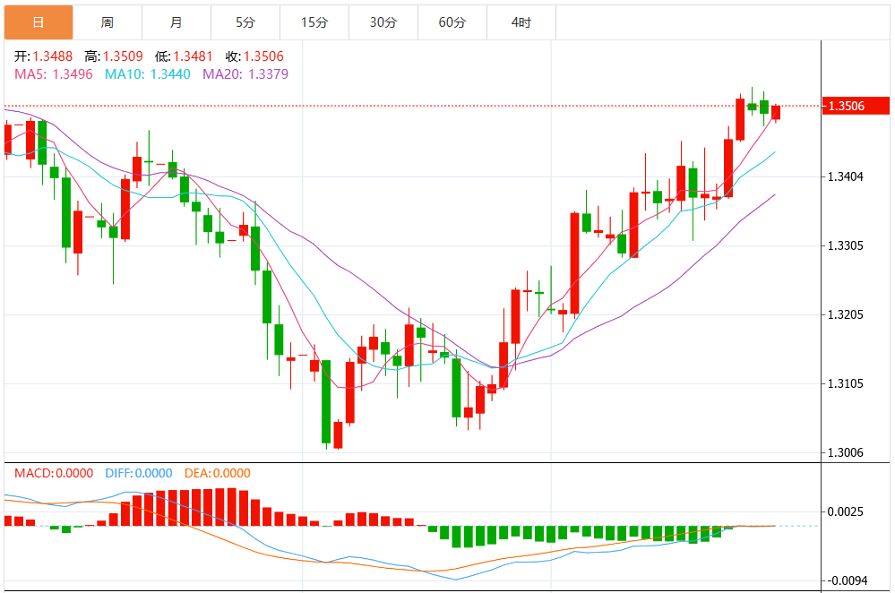 从1.3794的高点到1.3011的低点,61.8%的回撤位在1.3495处作为阻力。 突破该水平可能会触发向78.6%回撤位1.3626的移动。