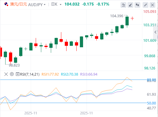 12月10日,澳元/日元交叉市场跌至约104.00,终结了周三欧洲早盘六天连胜。中国生产商通缩数据超出预期,削弱了中国代理澳元(AUD)兑日元(JPY)的表现。尽管如此,对日本扩张性财政措施的担忧和经济增长担忧,可能会限制该交叉的下行空间。