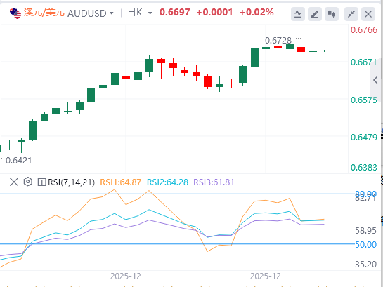 12月31日,澳元/美元连续第二天在0.6700附近徘徊,澳元兑美元汇率正应对年终市场交易量,整体动能受制。澳元上涨,澳大利亚储备银行(RBA)正逐步进入新一轮加息周期,美元(USD)整体承受着来自鸽派美联储(Fed)的压力,该机构预计将在2026年前进一步降息。