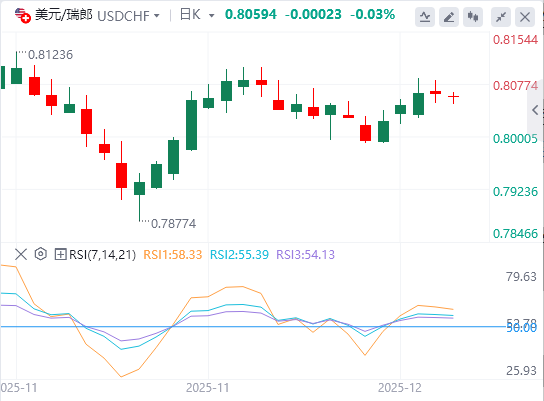 12月10日,周三欧市初盘,美元/瑞郎汇率持平在0.8060附近。随着投资者等待美联储(Fed)定于格林威治标准时间19:00发布的货币政策,瑞士法郎货币对开始盘整。