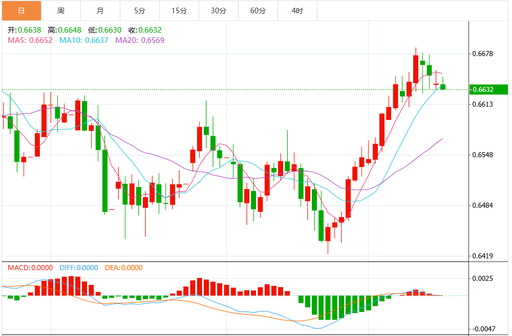 周二亚盘,澳元/美元承压下行,徘徊于0.6632附近,周一澳元/美元继续承压,澳元(AUD)小幅走低,因美元(USD)在周二即将发布的美国经济数据前出现适度反弹。