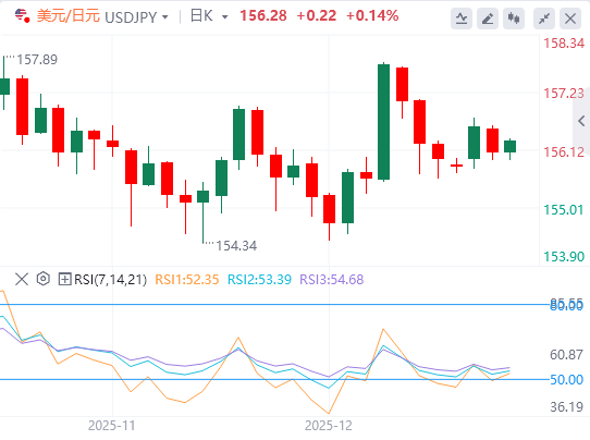 12月30日,周二亚市盘中,美元/日元上涨0.17%,接近156.30。随着日元略有压力,日元在周一发布的12月会议意见摘要(SOP)显示,政策制定者主张2026年继续走货币紧缩路线,日元(JPY)也略有压力。
