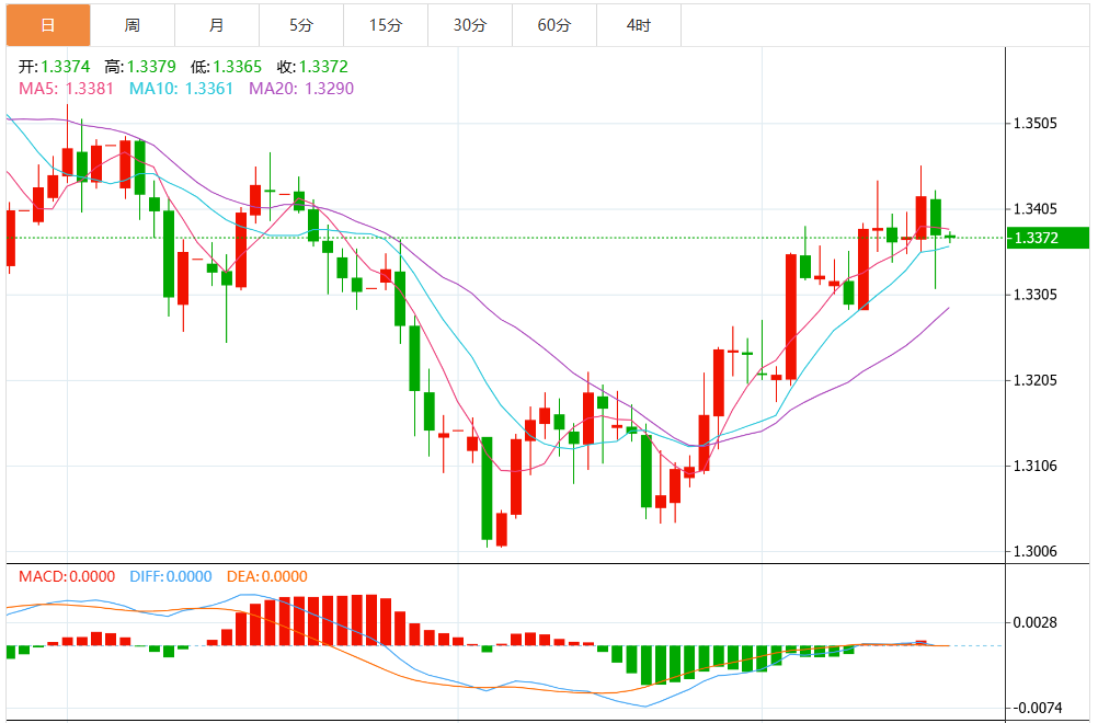动能指标方面,RSI回升至60附近,处于偏强但未超买区间,MACD维持零轴上方运行,红柱逐步放大,表明多头动能占优。上方需关注1.3530一线的心理与技术双重阻力,下方关键支撑位于1.3400区域,只要该区间不被有效跌破,整体走势仍以震荡偏强对待。