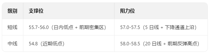 形态:上周触及54.8低点后反弹,为技术性反抽,非趋势反转信号。