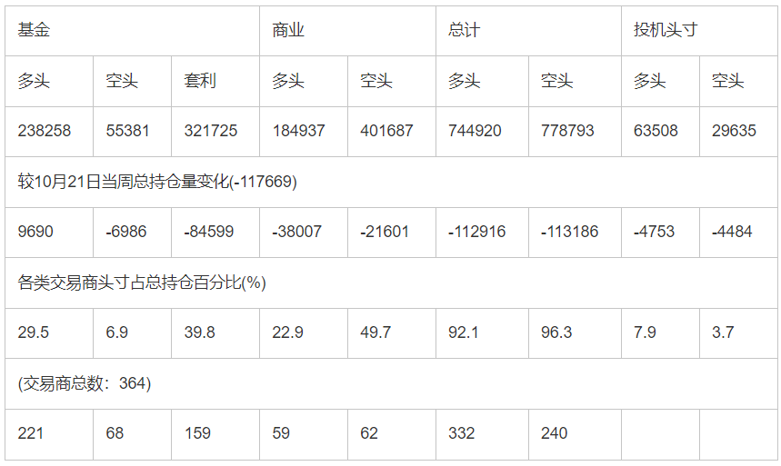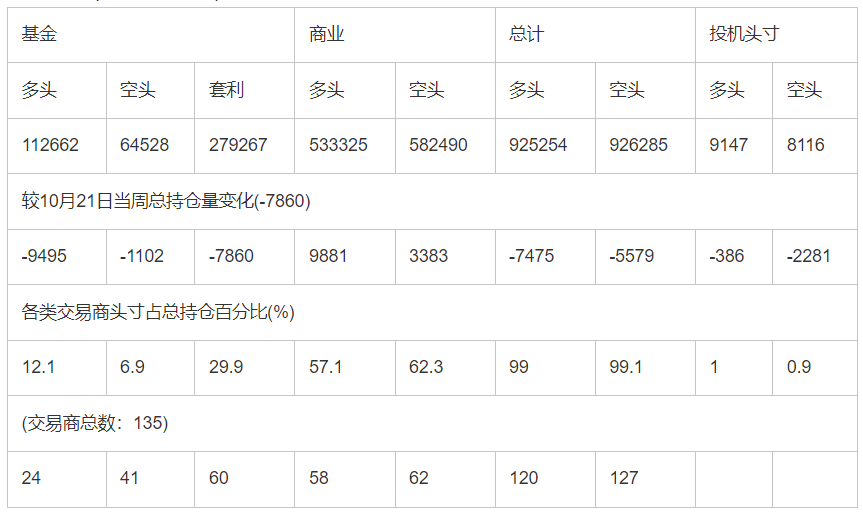 CFTC:截止10月28日当周洲际交易所(欧洲)原油期货和期权持仓报告