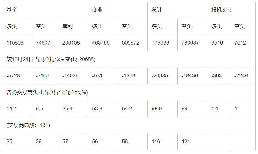 CFTC:截止10月28日当周COMEX(纽约商品期货交易所)黄金期货和期权持仓报告