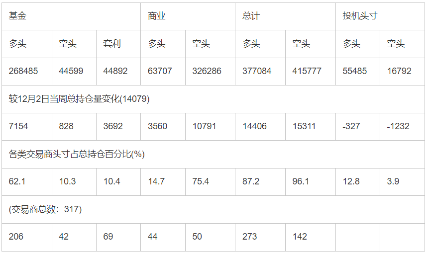 截止12月9日当周COMEX(纽约商品期货交易所)黄金期货分类持仓报告: