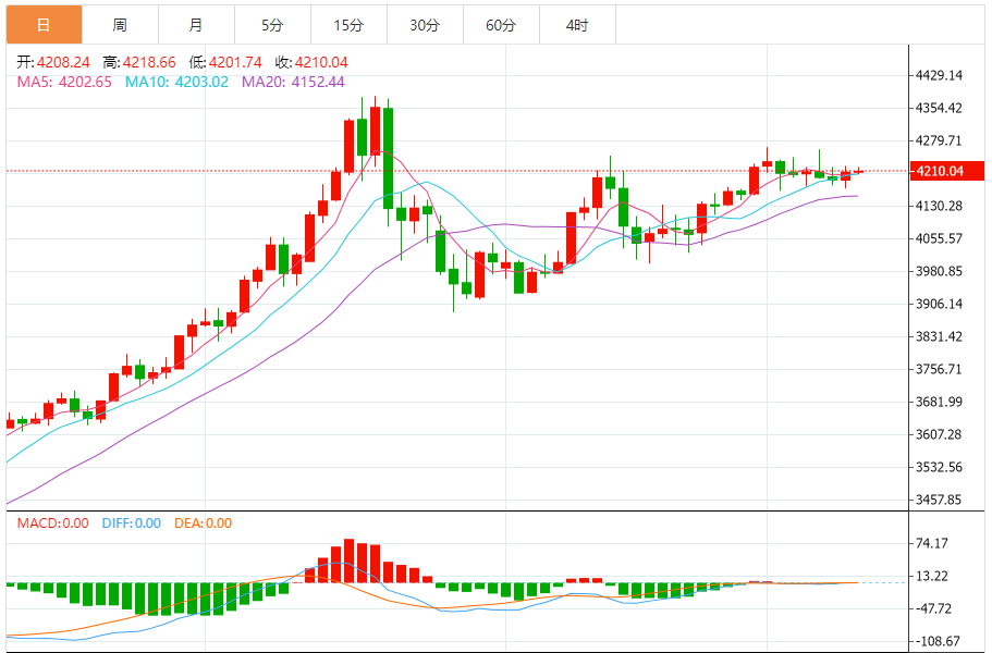 周三(12月10日),现货黄金目前位于4209.25美元/盎司附近,涨幅为0.03%。
