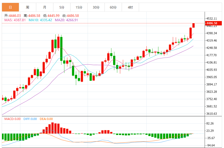 周二(12月23日),现货黄金目前位于4486.56美元/盎司附近,涨幅为0.97%。