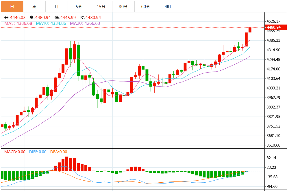 周二亚盘,现货黄金交投于4480美元/盎司附近,受地缘政治紧张局势加剧与市场预期美国2026年进一步降息的共同推动,黄金与白银价格大幅飙升,双双创下历史新高。