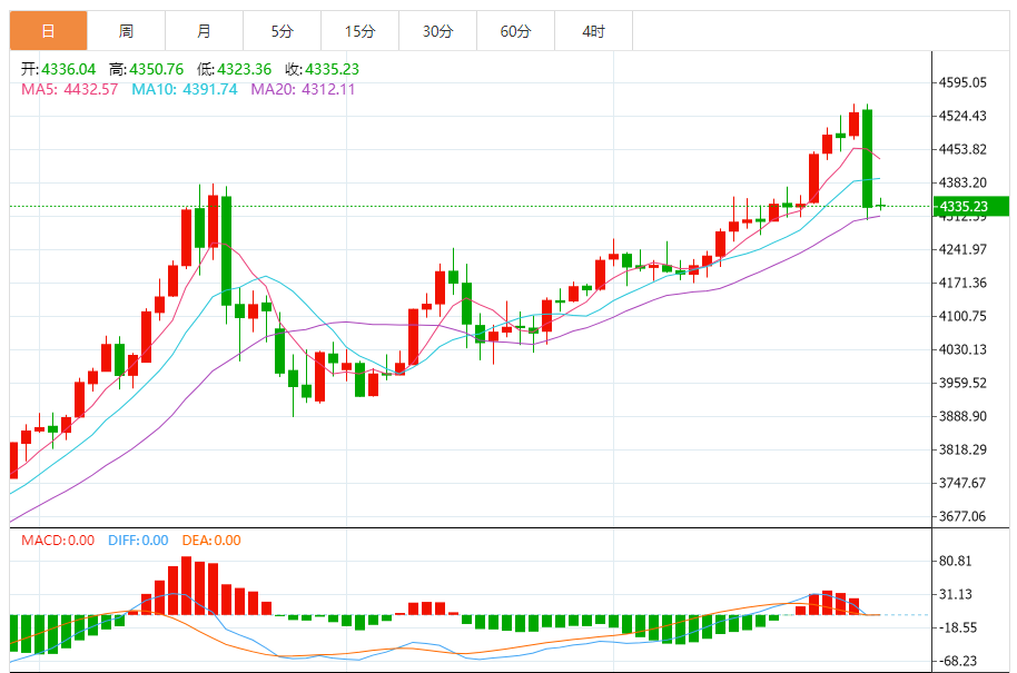 日线级别来看,短期上涨趋势暂受冲击,关键支撑区防守成核心。昨日大阴线直接跌破前期盘整平台下沿4380美元/盎司,且收盘价处于5日均线与10日均线下方,当前5日、10日均线已初步拐头向下,形成短期压制。不过价格在触及20日均线(4310美元/盎司附近)后出现企稳迹象,昨日低点4303美元/盎司与20日均线形成共振支撑区,该区域能否守住直接决定短期趋势走向。指标层面,日线RSI指标自超买区间(80以上)快速回落至52,超买压力得到部分释放,但MACD指标红柱持续缩短,且有形成死叉的迹象,空头动能仍在延续。若今日能站稳4310-4303支撑区,大概率开启技术性反弹;若有效跌破,则可能进一步下探黄金分割支撑位。