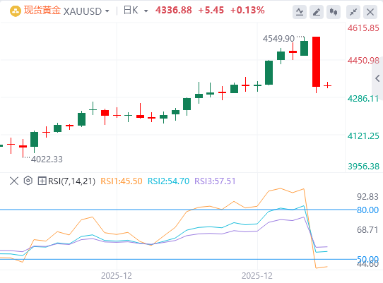 现货黄金冲高回落,日内重挫200美元,;现货白银上演过山车行情,截至目前,黄金报价4336.88。