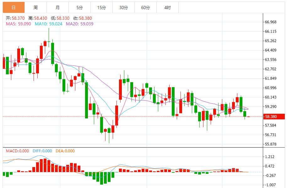 周三(12月10日),美原油价格交投于58.350美元/桶附近,涨幅为0.14%。