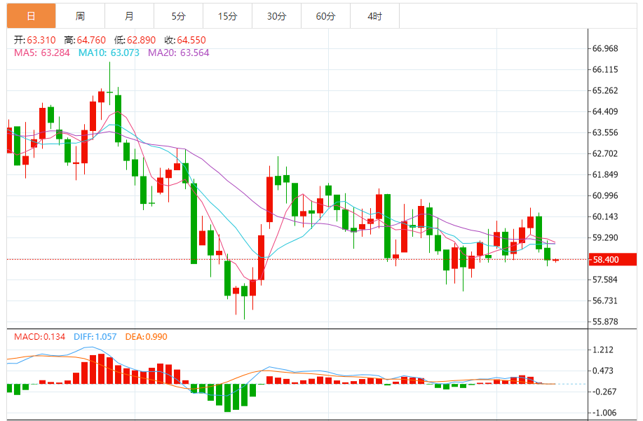 周三(12月10日),美原油价格交投于58.390美元/桶附近,涨幅为0.26%。